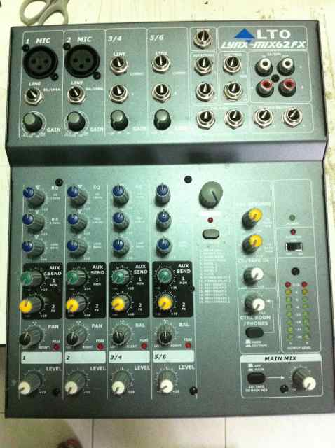 เป็นเครื่องมิกซ์เสียงขนาดเล็ก แต่คุณภาพ เจ้าของซื้อมา ไม่ค่อยได้ใช้ 6 Input, 2 Bus Console, DSP (for 62FX) 2 MIC input channels with gold plated XLR and balanced LINE input 2 stereo input channels with balanced TRS jacks Ultra-low noise discrete MIC pre-Amps with +48V Phantom power Extremely high head room offering extra dynamic range Balanced inputs for optimal signal integrity Warm, natural 3-band EQ on each channel Built-in 24 bits digital effects process (For LYNX-MIX62 FX model) Peak LED on each channel 2 AUX sends pre-channel for external effect sand monitoring Main out put, Control room and head phone out puts 2-Track inputs assignable to main mix, control room/ head phone out puts Highly accurate 8-segment bar-graph meters Dimensions (WxDxH): 202 x 250 x 58 mm (7.95" x 9.84" x 2.28") Net Weight: 1.7kg (3.75lbs)