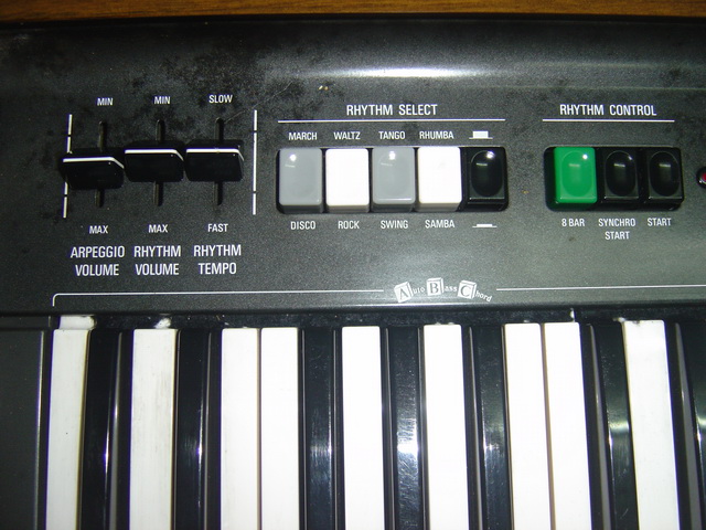 Details: เป็นอิเล็คโทนที่ซื้อในประเทศไทยครับ คุณพ่อซื้อต่อเค้ามาก็หลายปีละครับ มี 61 คีย์ มี 5 ซาวน์ให้เลือก 1.ORGAN 2.BRASS 3.STRING 4.PIANO 5.HARPSICHORD และมีจังหวะ (Rhythm) 8 จังหวะ 1.MARCH 2.WALTZ 3.TANGO 4.RHUMBA 5.DISCO 6.ROCK 7.SWING 8.SAMBA มีจังหวะส่งเมื่อครบ 8 Bar มี ARPEGGIO (คือการไล่เสียงจากสูงไปต่ำและต่ำขึ้นสูง โดยเล่นเป็นโน้ตที่ 1 3 5 ของคอร์ดนั้นๆ) มีระบบ ABC (Auto Bass Chord) ทำให้เล่น เบสและคอร์ดได้โดยอัตโนมัติ 2 รูปแบบ คือ 1.Single Finger Chord เป็นการเล่นคอร์ดโดยใช้เพียงนิ้วเดียว 2.Fingered Chord คือการเล่นคอร์ดโดยกดคอร์ดเต็มแบบปกติเพียงครั้งเดียว ระบบก็จะเล่นคอร์ดให้โดยอัตโนมัติ มี Pedal สำหรับเบาค่อยเสียง
