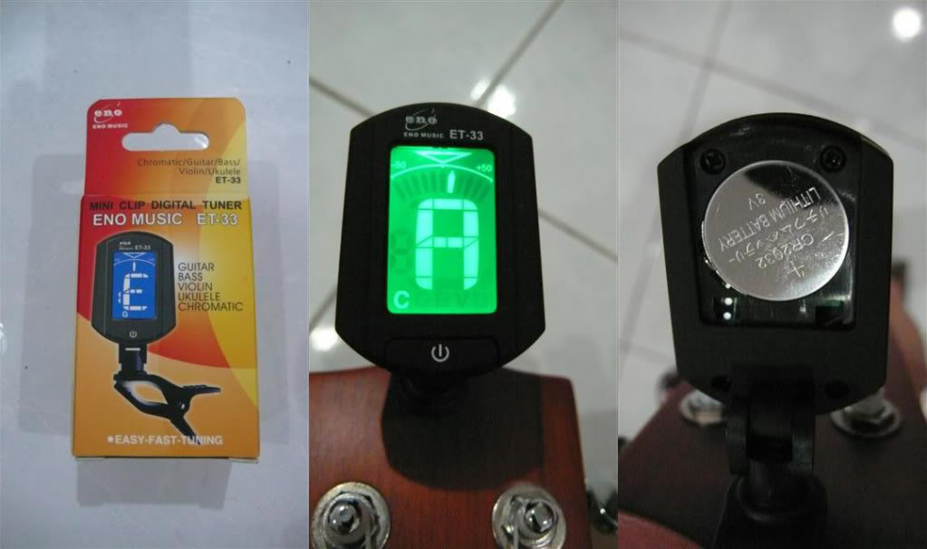 TUNER จิ๋ว สารพัดประโยชน์จู นได้ทั้ง Ukulele, Guitar, Violin, Bass ใช้งานง่ายพกพาสะดวก เพียงคุณหมุนและดีดสายกีตาร์ไปเรื่อยๆ เครื่องจะจับวัดความถี่เสียงโดยอัตโนมัติ เมื่อหมุนสายจนเข้าตำแหน่งเสียงที่ตรงแล้ว ไฟหน้าจอจะเปลี่ยนเป็นสีเขียว (เข็มหน้าปัดต้องอยู่ตรงกลางด้วย) ก็เป็นอันเสร็จสิ้นการตั้งสาย
