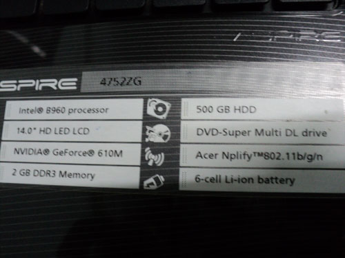 Sale Notebook Acer 4752ZG B960 2.2 GHz 2GB DDR3 GeForce 610M 1 GB เหลือประกัน 6 เดือน 8,900 B