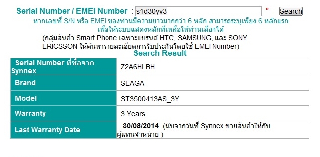 ประกัน 3 ปี จาก SYNNEX ประกันหมด 30/08/14