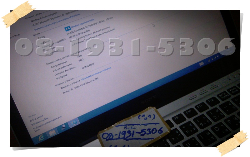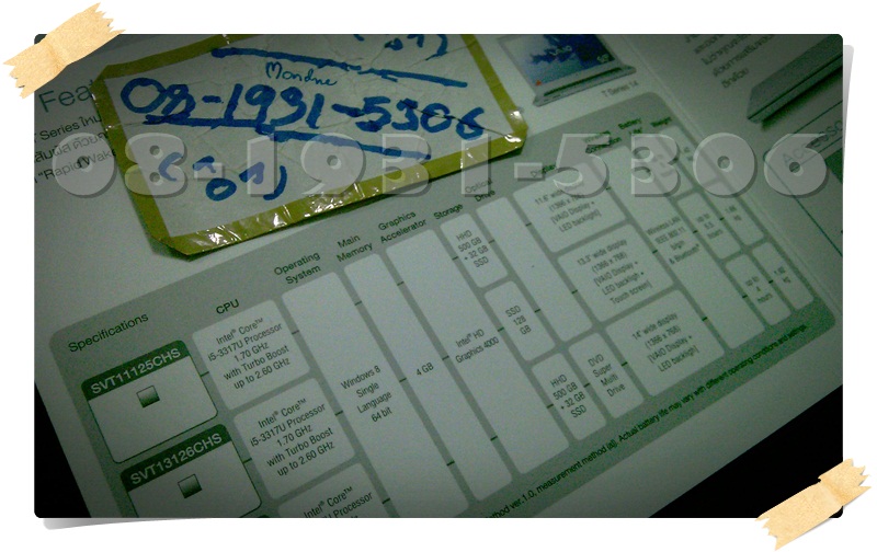 อุปกรณ์ :Ultrabook จอสัมผัส Sony Vaio SVT13126CHS SSD 128GB แบต 5.5 ชั่วโมง เครื่องศูนย์ ประกันเหลือปีกว่า ยกกล่องครับ