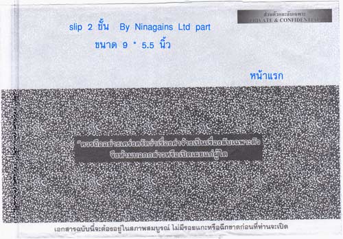 เป็นซองตามภาพ โดยด้านหน้าซองจะเป็นแค่ชื่อพนักงาน และตำแหน่ง ต้องฉีกรอยปลุออกจึงจะเห็นรายละเอียดด้านใน