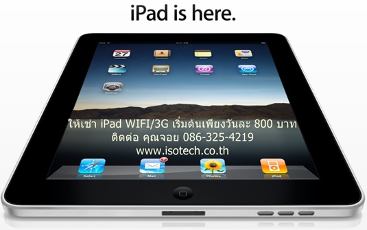 บริการให้เช่า iPad, iPad2, New iPad 16GB WIFI/3G เพื่อความทันสมัยในการนำเสนองานของท่าน พร้อมบริการติดตั้ง รับส่ง เริ่มต้นเพียงวันละ 800 บาทเท่านั้น !!! สนใจเช่าเครื่องคอมพิวเตอร์ โน้ตบุ๊ค iPad ไอแพ็ด ปริ้นเตอร์ สแกนเนอร์ มัลติฟังชั่น เครื่องถ่ายเอกสาร จอพลาสม่า จอมอนิเตอร์ สำหรับงานในสำนักงาน หน่วยงานรัฐและเอกชน งานแสดงสินค้า งานอบรมสัมนา ไม่จำกัดระยะเวลาในการเช่า พร้อมลิขสิทธิ์Microsoft ถูกกฏหมาย เรายินดีให้บริการด้วยทีมงานที่มีความสามารถและเครื่องที่มีประสิทธิภาพ ไม่ว่าจะเป็นเครื่องประกอบ หรือเครื่องยี่ห้อ HP/ ACER/ DELLเพื่อการใช้งานที่เหมาะสมกับความต้องการ