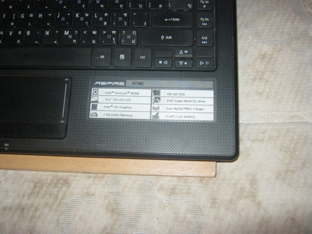 ขาย notebook Acer Aspire 4738Z Pentium P6300 Ram DDR3 4 GB HDD 500 GB 14 WXGA DVD-RW ราคาเพียง 6900 CPU Intel Pentium P6300 2.26 GHz RAM DDR3 4 G การ์จอ Intel ทำงานดูหนัง Hidef ลื่นๆ ฟังเพลง Internet หรือเล่นเกมส์ออนไลน์ทั่วๆ ไปได้สบายๆ ราคา 6900 เท่านั้น สนใจโทร สิ่งที่ท่านจะได้รับ
