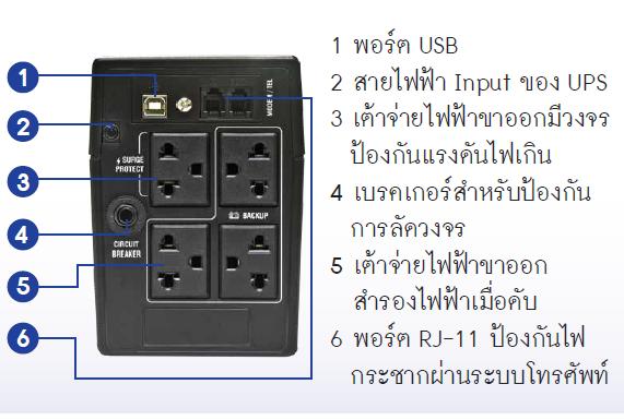 - มีช่องต่อสายโทรศัพท์ สำหรับป้องกันอุปกรณ์จากแรงดันไฟฟ้าสูงชั่วขณะ