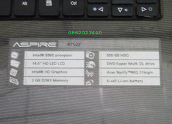 (ขายแล้วครับ) โน้ตบุ๊คราคาเบาๆ มีประกันศูนย์ 6 เดือน ,Acer 4752Z Intel Pentium B960(2.2 GHz/ 2MB L3),HDD 500GB,Ram 2GB,จอ LED 14,HDMI,แบตฯ 3ชม.สภาพใหม่