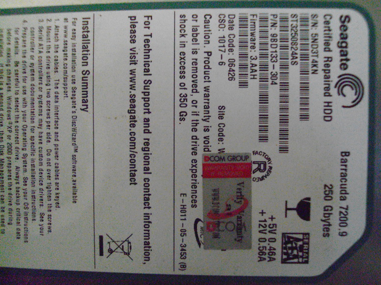 seagate 7200 250g SATA สภาพ 80% ราคา 800
