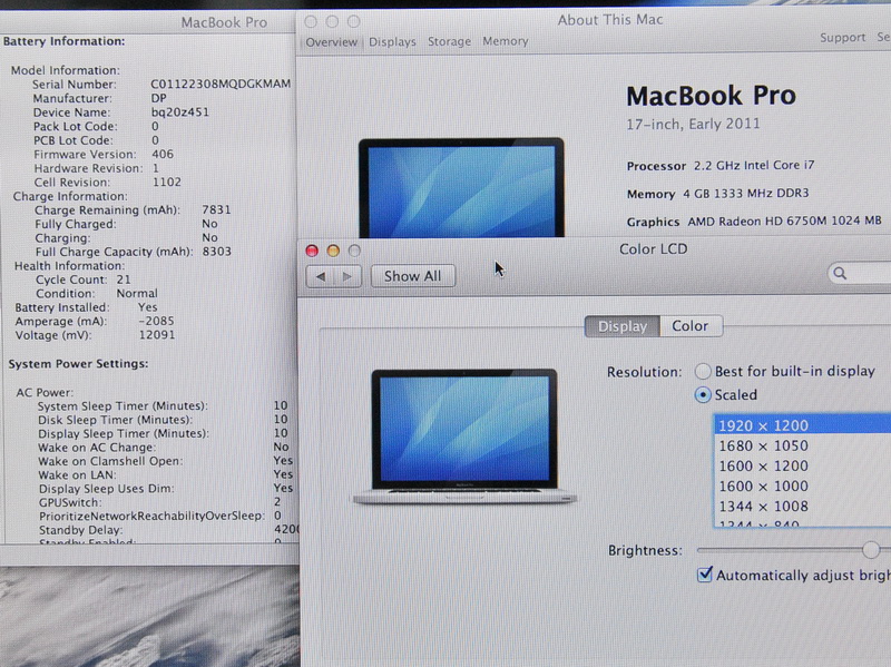 - MacBook Pro 17-inch i7 Quad-Core 2.2GHz. Late 2011