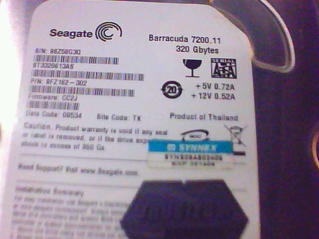 ขาย Harddisk Seagate 320Gb Sata จำนวน 8 ตัว ราคาตัวละ 1,400 บาท รุ่น ST332613AS จัดส่งทางไปรษณีย์