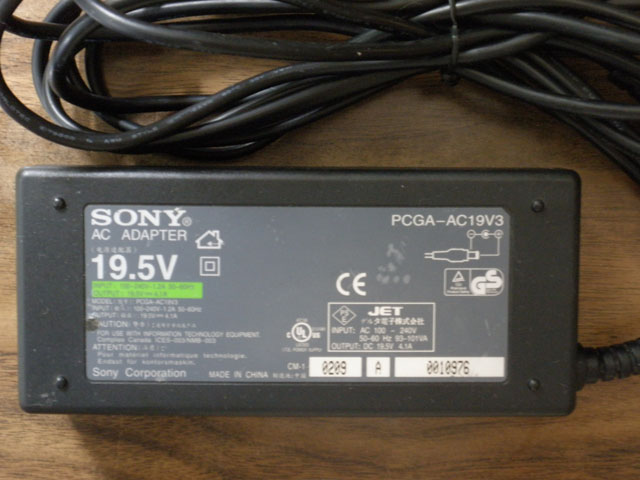 2. SONY 19.5V-4.1A MODEL : PCGA-AC19V3 ติดมากับเครื่อง SONY ขาย 450.- รวมส่งลงทะเบียน, มารับเอง 400.-