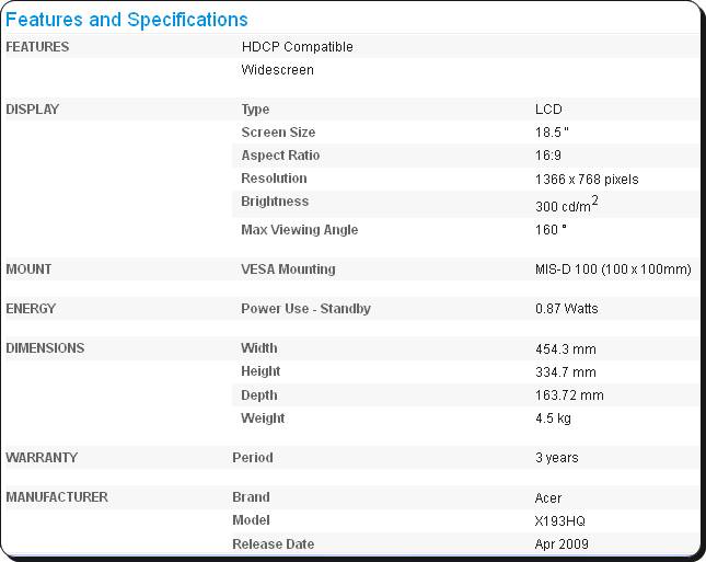 ขาย LCD ACER X193HQ 18.5 นิ้ว มือสอง