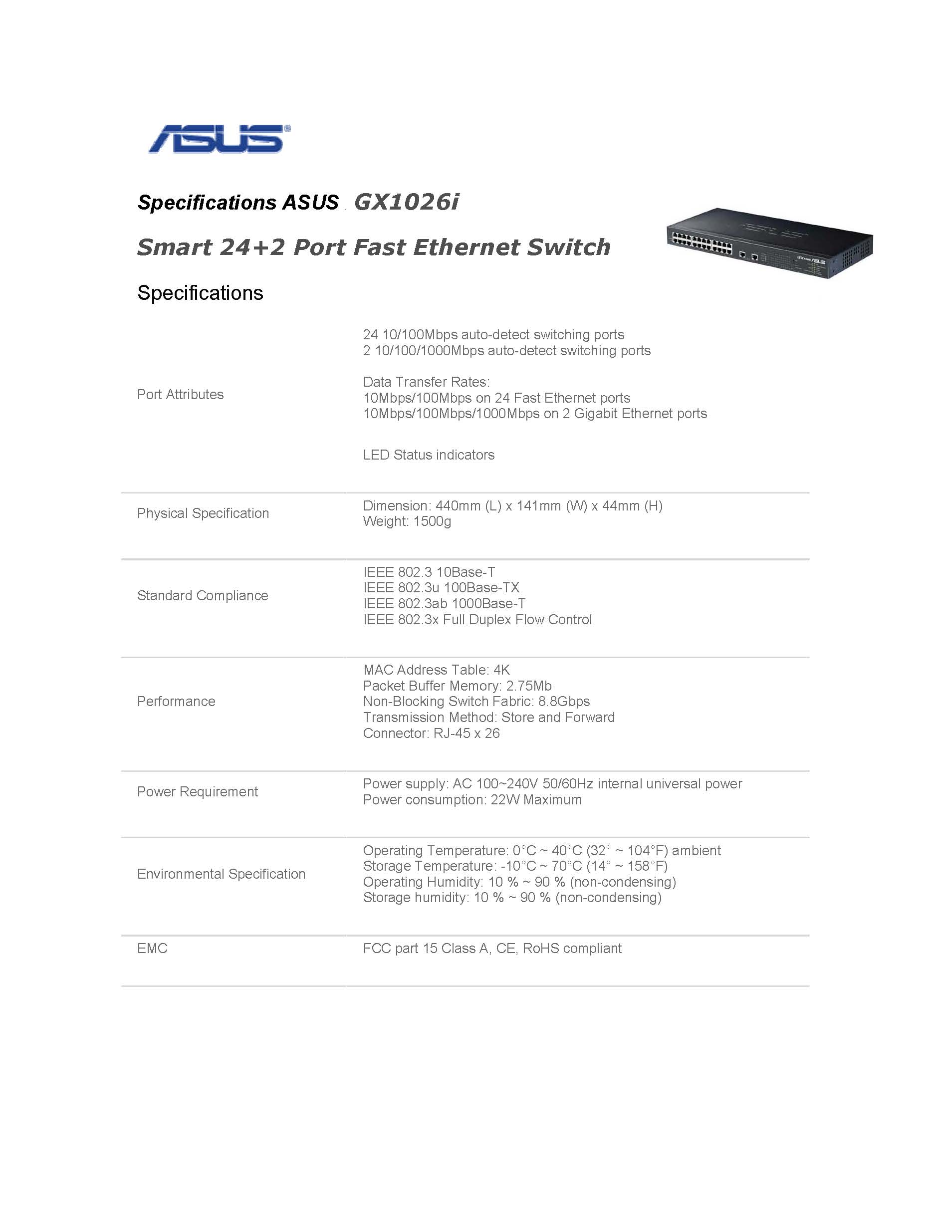 ขาย SWITCH ASUS GX-1206i 24 Port 10/100,2x Gb port warranty 2-Y สภาพ New