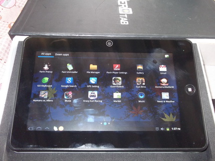 Specifications: CPU AML8726-M Cortex-A9 GPU Mali-400 Operating System Android 4.0.3 RAM 1024MB Storage 8GB Nand Storage Other microSD(TF) up to 32GB Camera 1.3Mp Screen Size 7 inch Screen Resolution 800×480 Screen Type Capacitive Screen Output HDMI Video HD Support 1080P Internet Connections WIFI Wifi 802.11 b/g 3G External GPS None Battery 3400mAh Music around the state About 8 hours About the video mode About 3-4 hours Video formats AVI, WMV, MP4, MKV, RM, RMVB, FLV, MOV, 3GP Music formats MP3, WMA, WAV, APE, FLAC, AAC, OGG Picture formats JPG/BMP/GIF E-book formats TXT/PBD/PDF/EPUB/FB2/HTML Language Czech, Danish, Dutch, English, Spanish, French, Italy, Norwegian, Polish, Portugues, Swedish, Turkish, Greek, Russian, Korean, T-Chinese, S-Chinese, Japanese, Germany Screen calibration Support Clock function Support Calendar function Support Remote control functions None G-sensor function Support Transmission Interface USB 2.0 Other functions Bluetooth, OTG