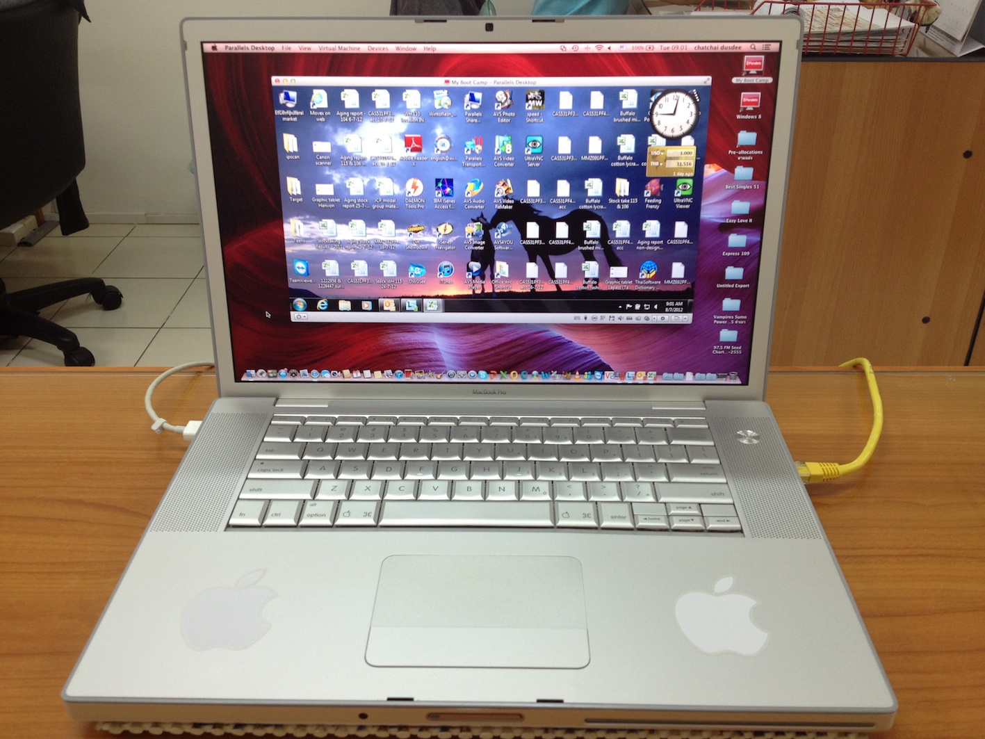 MacBook pro 15" model MacBookPro 3,1 CPU Intel Core 2 Duo 2.4 GHz 4GB 667 MHz DDR2 SDRAM 15" LED display 1440x990 pixel 256 MB Nvidia geforce 8600G MT 160GB 7200rpm SATA HDD DVD writer +/-RW DL Battery like new with 11 cycle counts 85W Macsafe power adapter original. price 18,000.- baht