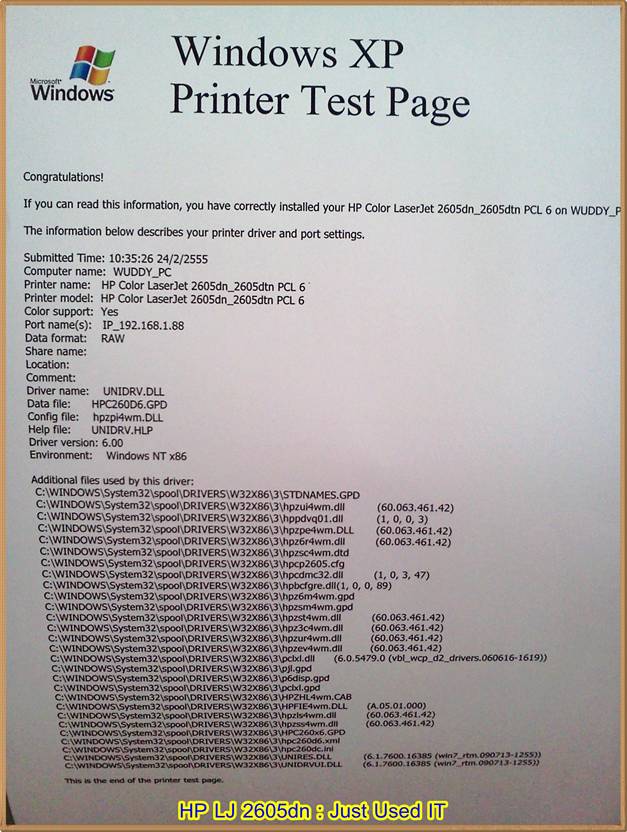 เครื่องพิมพ์เลเซอร์สี ยี่ห้อ HP รุ่น 2605dn