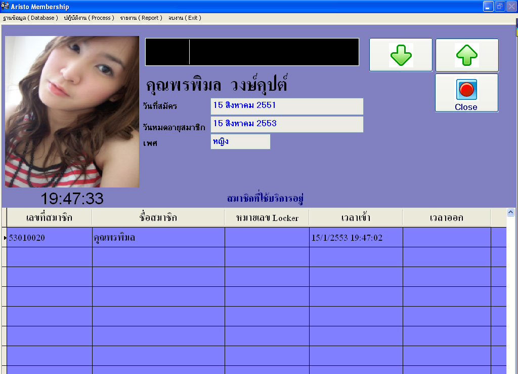 มีระบบจัดเก็บประวัติสมาชิก ระบบตรวจสอบช่วงเวลาสมาชิกในการเข้าใช้บริการได้