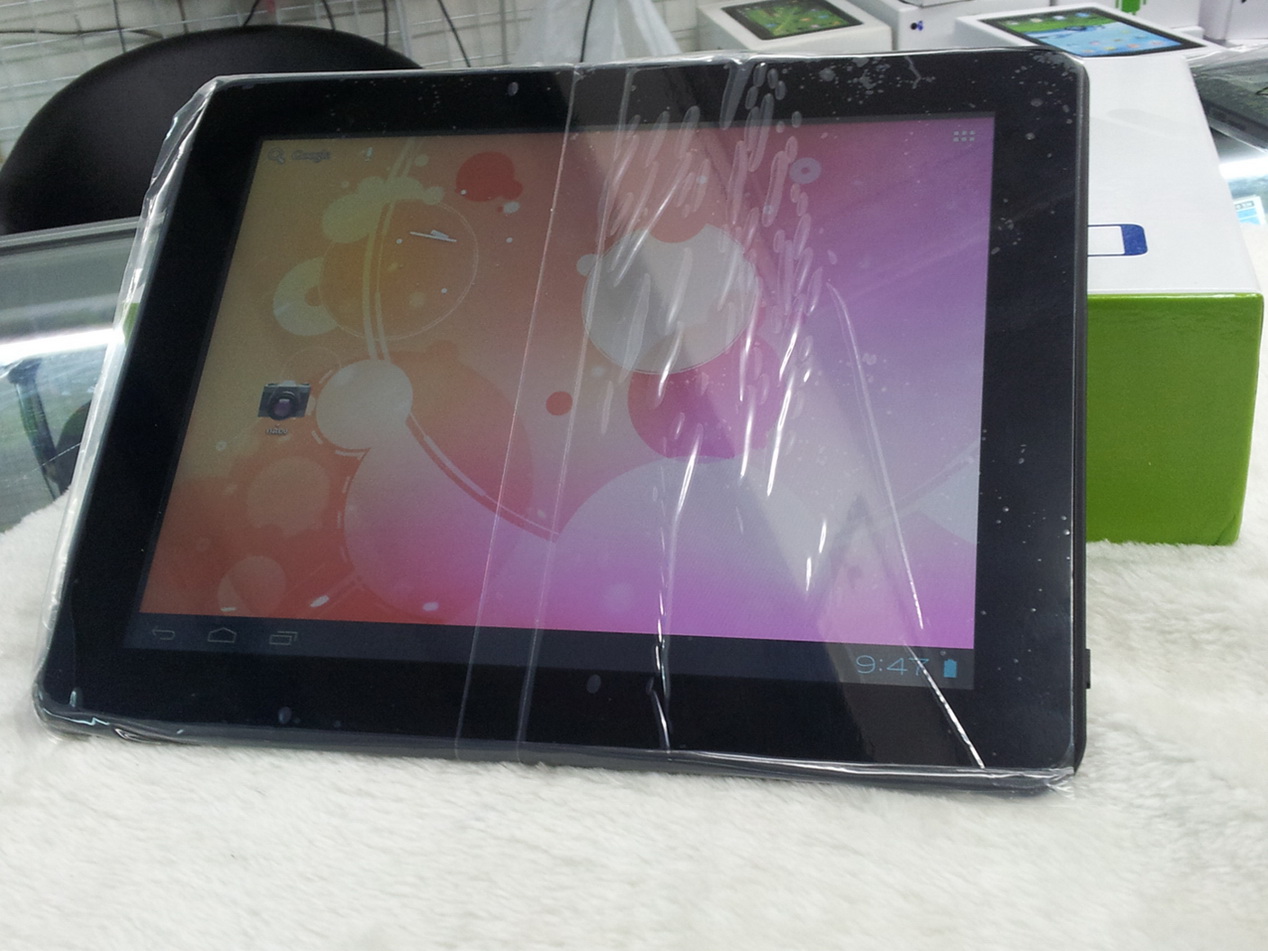 ตัวเครื่องมี สีเงิน กระเป๋าคีย์บอร์ดภาษาไทยมี สีดำ สีขาว สีแดง สีส้ม สีชมพู สีเขียว สีม่วง (ราคานี้ยังไม่รวมคีย์บอร์ด 400 บาท) ** Tablet ทุกเครื่องรับประกัน 1 ปี และสามารถใช้กับกระเป๋าคีย์บอร์ดพิมพ์ภาษาไทยได้ ราคานี้รวมค่าจัดส่งพัสดุ EMSแล้ว (ถ้า พกง.EMS พัสดุเก็บเงินปลายทางเพิ่ม 100 บาท)** Specification for9.7 InchAndroid 4.0 MID Tablet PC with Capacitive Screen HDMIBluetooth - Primary Function: 9.7 InchAndroid 4.0 MID Tablet PC -CPU: Rockchip 3066 Dual core 1.4 G, Mali 400 - Operation System: GoogleANDROID 4.0 Icecream Sandwich - RAM: 512MB DDR2 - Storage Device: 16GBNAND Flash - LCD display: IPS 9.7inch 4:3, Capacitive screen, 400cd/m2 - Touch panel: 10 point touch, A-class.G+G - G-SENSOR: MMA8452Q - HDMI:YES - Resolution: 1024x768 Pixels - Camera: Front 1.3MP, Back 2.0MP - Battery type: Rechargeable polymer battery, 8000MAH, 10h for playingmusic, 4h for playing video, 5h for surfing, 5V/2A charger - Speaker: DClass - MIC: yes - 3G module: support USB 3G - WIFI: 802.11b/g/n(high sensitivity) - I/O Ports - 1xDC In - 1xEarphone - 1xTF cardslot - 2xUSB2.0, One host, one OTG - Multimedia Video: H.264, VP8, RV,WMV, AVS, H.263, MPEG4 etc1080P, YouTube, 720P, HTML5, Flash11, Support allvideo formats - Music: MP3/WMA/WAV/AAC,AAC+, Support all music formats - On line chat: MSN/TWITTER, FACEBOOK, SKYPE VIDEO FUNCTION etc. -Office:Word/Excel/PDF/PPT, Microsoft Wordpad, Microsoft SpreadExcel - PIC: JPG,BMP, PNG etc. - Size: 241x186x9.8MM - Weight: 665g - Color: Silver