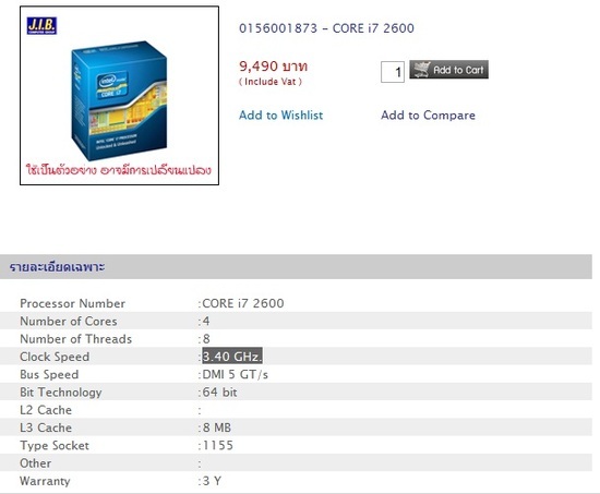 ต้องการขาย CPU INTEL CORE i7 2600 3.40 GHz. ของใหม่ครับ รับประกันของ Synnex 3 ปีครับ ซื้อมา 3 วันครับ ขายด่วนเพียง 7,500 บาทครับ