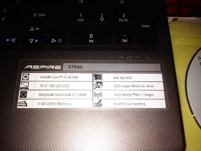 ขาย2nd-NoteBook acer : Aspire 5750G i5-2410M RAM 4GB GT540 2GB HDD 640GB LED15.6WXGA