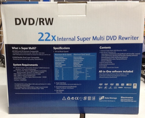 DVD/RW 22x Internal Super Multi DVD Rewriter 8.5 GB DVD+R Double Layer 16x DVD+R Dual Layer 12x