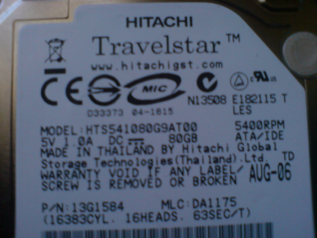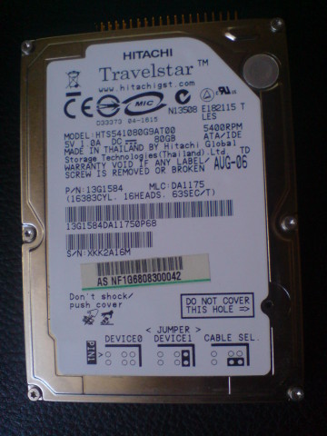 ขายถูกฮาร์ดดิสโน้ตบุ๊ค IDE HITACHI 80G สแกนแบดแบบละเอียดแล้วไม่มีBAD ใช้งานได้ดีไม่มีงอแงครับ