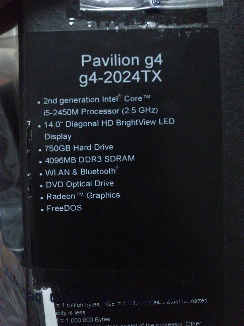ขาย HP pavillion g4-2024tx สีดำ จากราคา 21,000.บาท ขอขายราคา 19,500 บาท เครื่องใหม่ยกกล่องพร้อมกระเป๋า สินค้าใหม่ยังไม่ได้ใช้งาน เป็นเครื่อง DOS ลูกค้าต้องลง windows เองนะคะ ราคาต่อรองได้นิดหน่อยค่ะ ประกันศูนย์เหลือ (เกือบ)เต็มๆค่ะ หมด 20/05/13 ค่ะ สินค้า