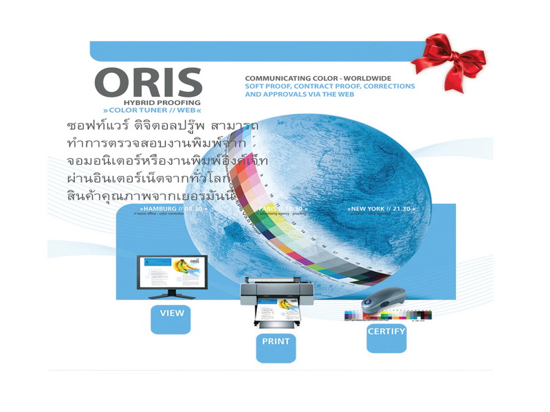 ORIS ซอฟท์แวร์ ดิจิตอลปรู๊พ สามารถทำการตรวจสอบงานพิมพ์จากจอมอนอเตอร์หรืองานพิมพ์อิงค์เจ็ท ผ่านอินเตอร์เน็ตจากทั่วโลก สินค้าคุณภาพจากเยอรมันนี www.prepress.com.th [email protected] tel : 0802010238