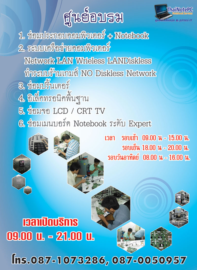 รับสอน ซ่อมคอมพิวเตอร์ โน๊ตบุ๊ค ศูนย์อบรม ThaiNotePC เปิด อบรม หลักสูตรดังนี้