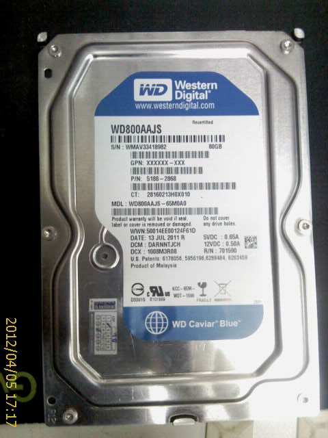 HDD Western Digital SATA 80 GB ประกัน COM 7 02/13