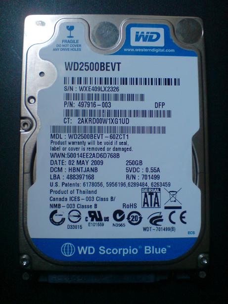 ขาย HDD โน้ตบุ๊ค SATA WD BLUE 250G สภาพสวย ไม่มีแบด ขายเพียง 1200 บาท มีรูปและผลสแกนด้านใน
