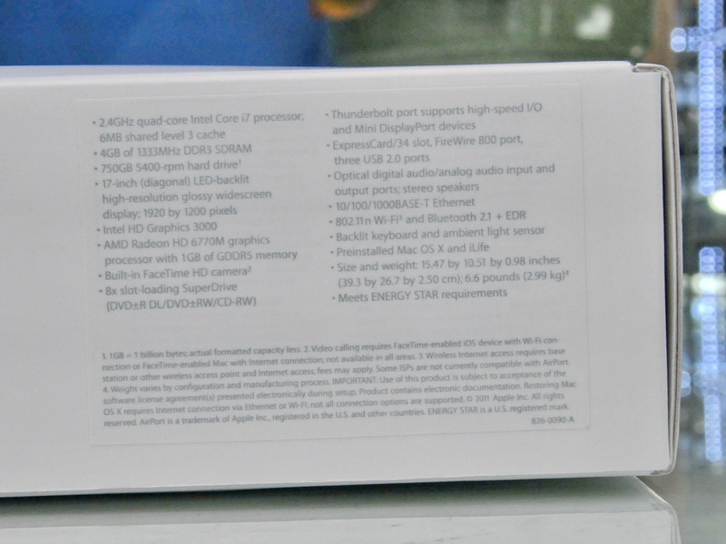 MacBook Pro17" Core i7 Quad-Core 2.4 GHz รุ่นใหม่ตัว Top ในตอนนี้ครับ มือหนึ่งยังไม่แกะกล่อง ปกศ 1 ปี เต็ม