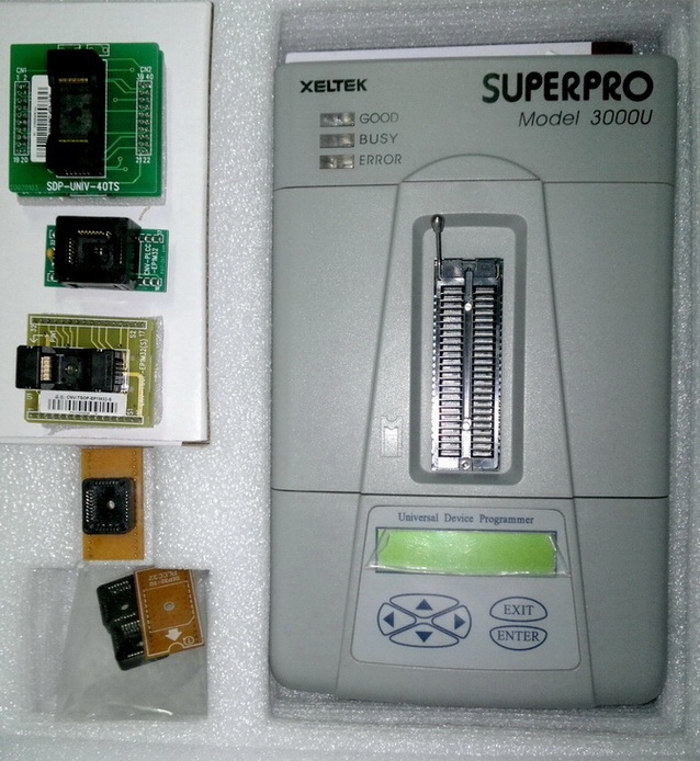 USB Interfaced Ultra-high Speed Stand-alone Universal Device Programme SUPER PRO / 3000U ... เครื่อง UNIVERSAL PROGRAMMER ที่มี 2 MODE ในเครื่องเดียว เป็นแบบพกพาได้ สามารถใช้งานคู่กับเครื่องคอมพิวเตอร์ PC โดยเชื่อมต่อผ่าน USB PORT หรือจะใช้งานเป็น Stand Alone Mode โดยการสร้าง PROJECT การทำงานกับ IC ต่างๆ เข้ามาเก็บบนตัวเครื่อง SUPERPRO/3000U ซึ่งจะมีคีย์บอร์ด และส่วนแสดงผลเป็น LCD ขนาด 16 ตัวอักษร 2 บรรทัด และ CompactFlash Card Drive อยู่บนตัวเอง ไม่ต้องผ่านเครื่องคอมพิวเตอร์ เหมาะสำหรับงานการผลิตที่ต้อง COPY IC ต่างๆ จำนวนมากๆ โดยใช้ให้พนักงานทำได้เองโดยไม่ต้องใช้ความรู้มากนัก และก็ไม่ต้องใช้คู่กับเครื่อง PC นอกจากนี้สามารถนำไปใช้ ในงานซ่อมบำรุงต่างๆ ใช้ตรวจสอบอุปกรณ์ TTL ว่าดีหรือเสีย ก็ได้ หรือใช้ทำการ COPY FLASH BIOS ของคอมพิวเตอร์ ... • CompactFlash Card Drive • ใช้งานกับ EPROM, Paged EPROM, Parallel and Serial EEPROM , FPGA Configuration Serial PROM, FLASH Memory (NOR and NAND),BPROM,NVRAM,SPLD,CPLD,EPLD,Firmware HUB,Microcontroller,MCU,Standard Logic. • ใช้งานได้กับอุปกรณ์ IC ต่างๆ มากกว่า 11,000 เบอร์ • ใช้ TEXT TOOL ขนาด 48 PIN ทำให้ใช้ได้กับ IC เบอร์ต่างๆ ตั้งแต่ 8 PIN จนถึงขนาด 48 PIN และขยายขนาดขาให้ใช้งานกับ IC ต่างๆ ได้มากขึ้นโดยเพิ่ม ADAPTER แบบต่างๆ เช่น แบบ SSOP, SOP, PLCC ฯลฯ ( ADAPTER เป็นOPTION สามารถสั่งซื้อได้ ) • Programs hight-density Flash memory สามารถใช้ COPY EPROM ต่างๆ ได้อย่างรวดเร็ว (Program + Verify Intel 28F320W18, 32Mb, at 18 Sec.) • สามารถใช้กับอุปกรณ์ใหม่ๆ ที่ใช้ VOLTAGE ต่ำๆ ได้ถึง 1.5V พร้อมวงจรป้องกันการใส่อุปกรณ์กลับด้าน หรือใส่ผิดเครื่องจะ หยุดทำงาน และแจ้งเตือนป้อนกัน IC นั้นๆ เสียหายได้ • 6 KEY KEYPAD พร้อม 16 x 2 LCD DISPLAY และ CompactFlash Card Drive • ต่อใช้งานกับเครื่องคอมพิวเตอร์ทาง PORT USB • ใช้งานแบบ STAND ALONE จะต้องมีหน่วยความจำ CompactFlash Card ต่ออยู่ด้วย (เป็น OPTION) โดยใน MODE STAND ALONE นี้เหมาะกับงานการผลิตที่จะต้อง COPY ไอซีต่างๆ เป็นจำนวนมากๆ • ใช้กับ OS ของ WINDOWS 98/ME/NT/2000/XP • สามารถเพิ่มเติม UPDATE PROGRAM SUPER PRO /3000U ให้ใช้ได้กับ IC เบอร์ใหม่ ๆ ได้จากทาง INTERNET ได้ที่ WWW.XELTEK-CN.COM หรือต้องการศึกษาดูรายละเอียดหรือ เบอร์ไอซีต่างๆ ที่เครื่องสามารถใช้ได้ ก็ไป LOAD โปรแกรมของเครื่อง SUPER PRO /3000U มาทดสอบก่อนได้ • ขนาดตัวเครื่อง 245mm(L) x 150mm(W) x 47mm(H) น้ำหนัก 2.0 Kg. • ในชุด SUPER PRO /3000U ประกอบด้วย ... แผ่น CD-ROM โปรแกรม, POWER SUPPLY AC 90V - 250V/50-60Hz,สายต่อ USB, • สามารถเพิ่มเติม UPDATE PROGRAM SUPER PRO /3000U ให้ใช้ได้กับ IC เบอร์ใหม่ ๆ ได้จากทาง INTERNET ได้ที่ WWW.XELTEK-CN.COM หรือต้องการศึกษาดูรายละเอียดหรือ เบอร์ไอซีต่างๆ ที่เครื่องสามารถใช้ได้ ก็ไป LOAD โปรแกรมของเครื่อง SUPER PRO /3000U มาทดสอบก่อนได้ • ขนาดตัวเครื่อง 245mm(L) x 150mm(W) x 47mm(H) น้ำหนัก 2.0 Kg. • ในชุด SUPER PRO /3000U ประกอบด้วย ... แผ่น CD-ROM โปรแกรม, POWER SUPPLY AC 90V - 250V/50 60Hz,สายต่อ USB, SuperPro 3000u USB Interfaced Ultra-high Speed Stand-alone Universal Device Programme SUPER PRO / 3000U ... เครื่อง UNIVERSAL PROGRAMMER ที่มี 2 MODE ในเครื่องเดียว เป็นแบบพกพาได้ สามารถใช้งานคู่กับเครื่องคอมพิวเตอร์ PC โดยเชื่อมต่อผ่าน USB PORT หรือจะใช้งา