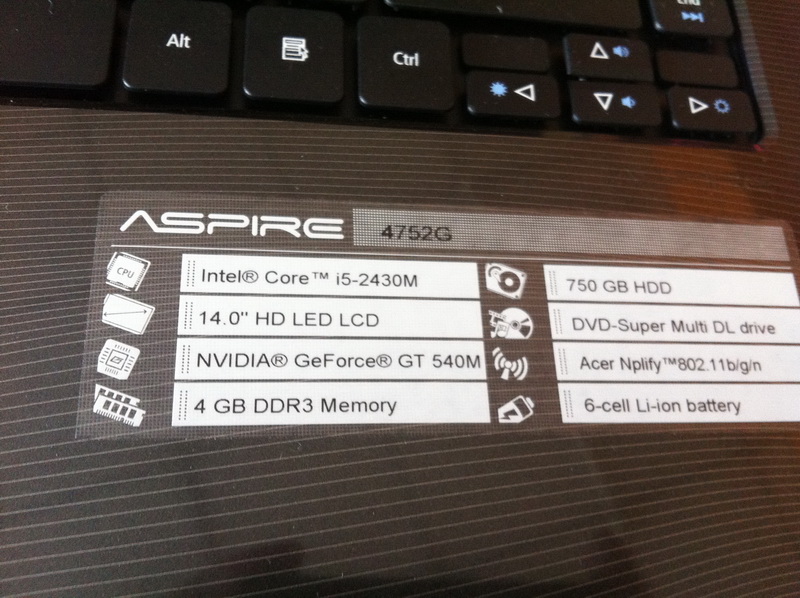 ACER 4752G-2434G75Mnkk Processor CPU Intel Core i5-2430M (2.40 GHz, 3 MB L3 Cache, up to 3.0 GHz) Chipset Mobile Intel HM65 Express Chipset Graphic system Graphic Chip nVidia GeForce GT 540M 1GB Display Type 14 inch WXGA (1366x768) LED Main Memory Memory 4 GB DDR3 Hard Disk Drive Hard Disk 750 GB สภาพ 98% เหมือนซื้อใหม่เลยครับ ประกันศูนย์ยาว เหลืออีก 1 ปี กับอีก 6 เดือน อุปกรณ์ กระเป๋าที่ชาร์ต ราคา 15500 บาท ติดต่อ 083-9458499 หรือตามลายเซนต์ครับ ของอยู่เชียงใหม่ ต่างจังหวัดค่าส่ง 200 บาททั่วประเทศ