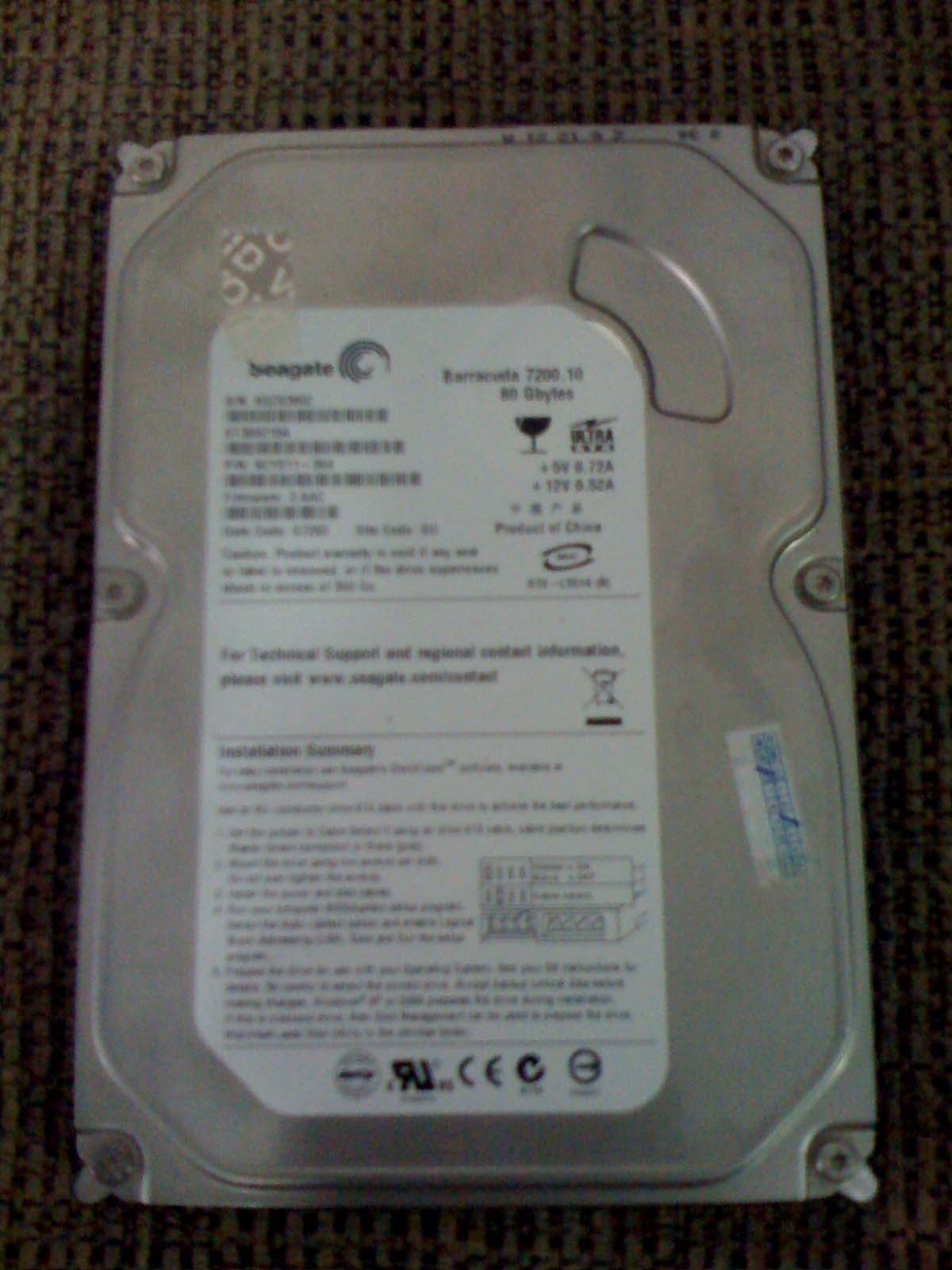 HDD Seagate (S-ATAII For PC) 80Gb ประกันยังไม่หมดสภาพ98% ใช้งานได้ปรกติ ราคา 500 บาท ประกันของ SYNNEX หมด 03/2012 ใช้งานแค่ 3 เดือน