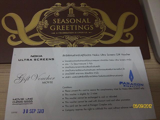 ขายตั๋วหนัง(Gift Voucher)โรงหนังโนเกีย 1 คู่ ราคาเต็มมูลค่า 1,400.00 แต่ เราขอขาย 800.00 ที่ขาย เพราะเรามีลูกเล็ก ได้บัตรมาแล้วไม่มีเวลาไปดู จึงขาย บัตรหมดอายุ 30/09/56 ค่ะ บัตร 1 ใบ ไปดูได้ 2 ที่นั่งค่ะ ที่พารากอน ซีนีเพล็กซ์ เท่านั้นค่ะ