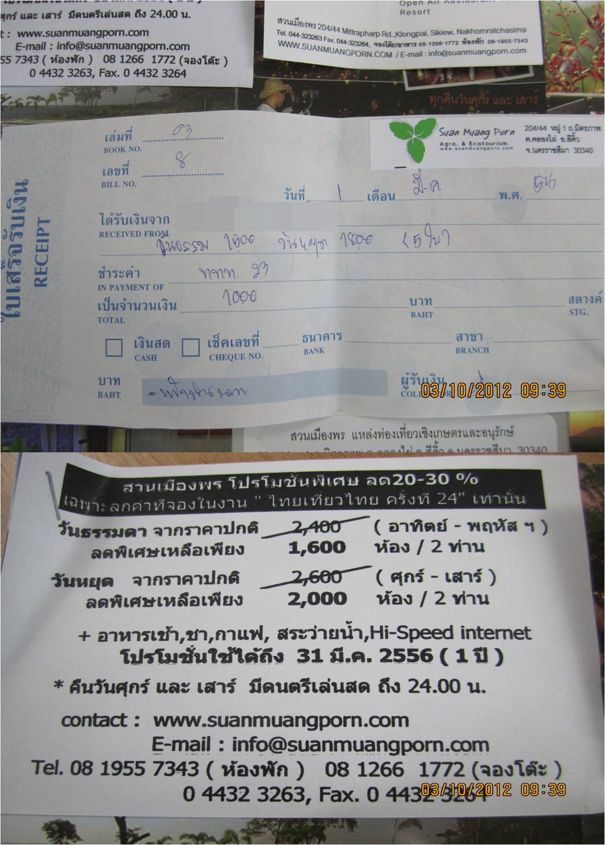 ขายใบจองห้องพักที่สวนเมืองพร ซื้อมากจากงานไทยเที่ยวไทย ครั้งที่ 24 มาค่ะ จำนวน 1 ห้อง ขายเท่าราคาจอง 1,000 บาท ส่ง ems ฟรีค่ะ ส่วนที่เหลือจ่ายเพิ่มที่รีสอร์ท วันธรรมดา 500 บาท วันหยุด 800 บาท หมดเขตวันที่ 31 มีนาคม 2556 ค่ะ ที่สำคัญคืนวันศุ