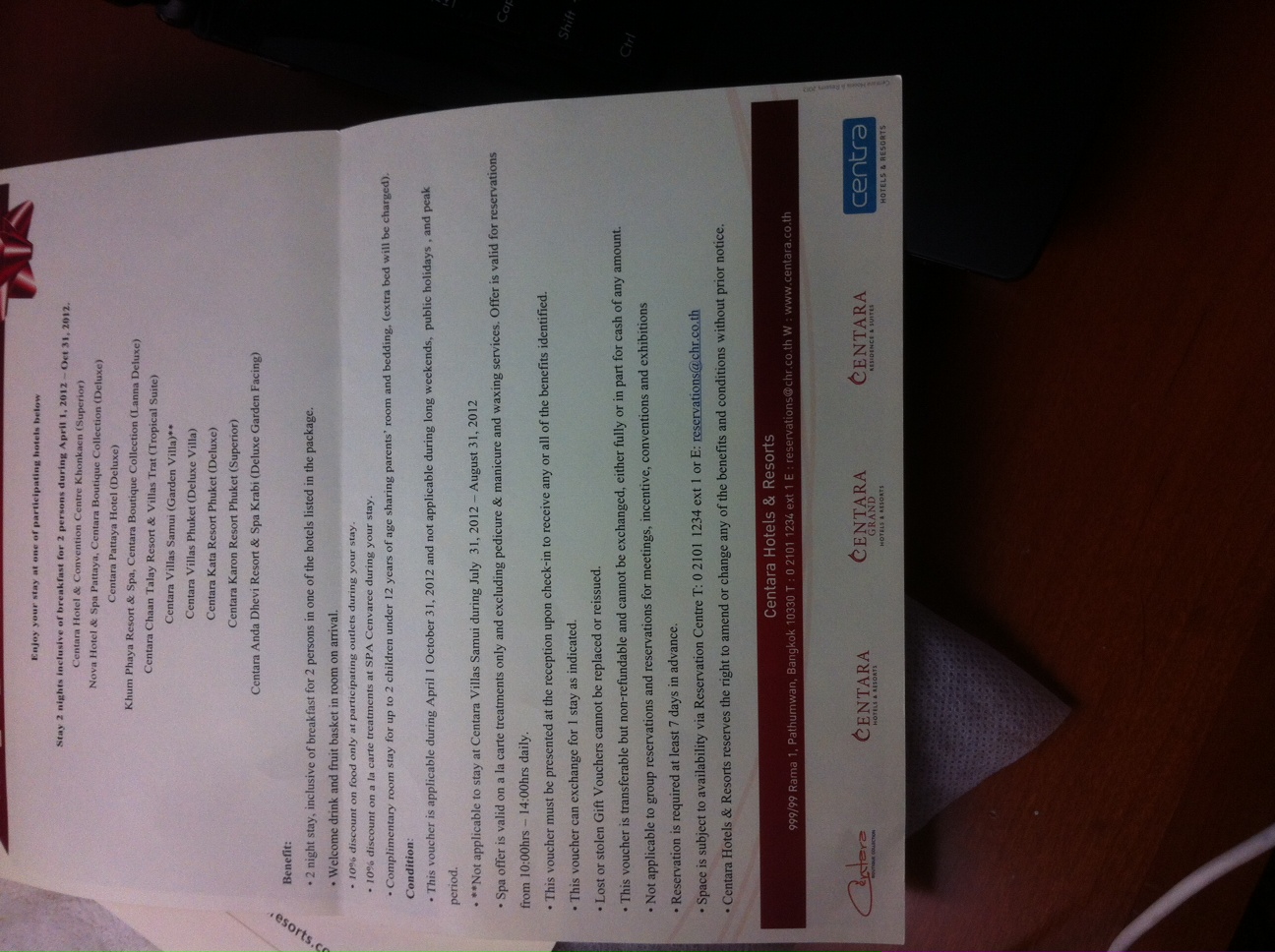 ขาย Voucher พักโรงแรม ในเครือ Centara 2 คืน สำหรับ 2 ท่านพร้อมอาหารเช้า ใช้ได้ที่ พัทยา,สมุย,ภูเก็ต,ตราด,กระบี่ ฯลฯ 5,900