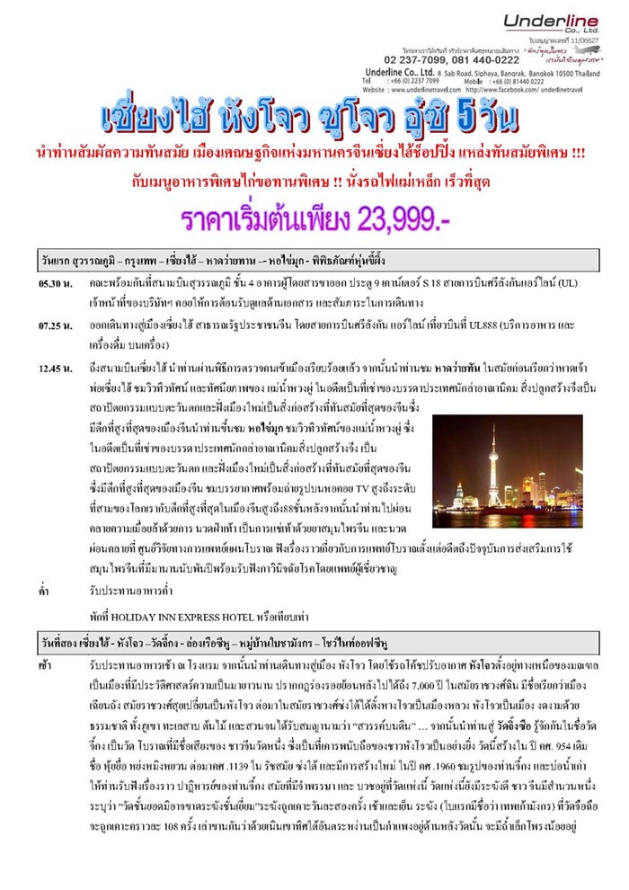| ติดต่อ: | บริษัท อันเดอไลน์ ทราเวิล/คุณวราภรณ์