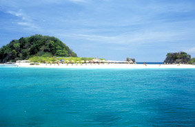 ด้านหน้าของเกาะเหมาะแก่การนอนอาบแดด มีสันทราย
