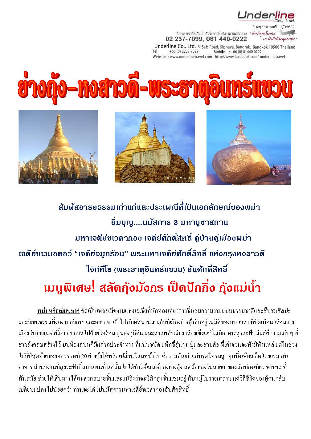 ราคาถูก!!เที่ยวย่างกุ้ง-หงสา-พระธาตุอินทร์แขวน-สิเรียม 3วัน