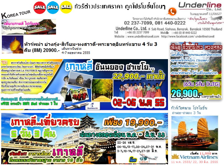 | ติดต่อ: | บริษัท อันเดอไลน์ ทราเวิล/คุณวราภรณ์