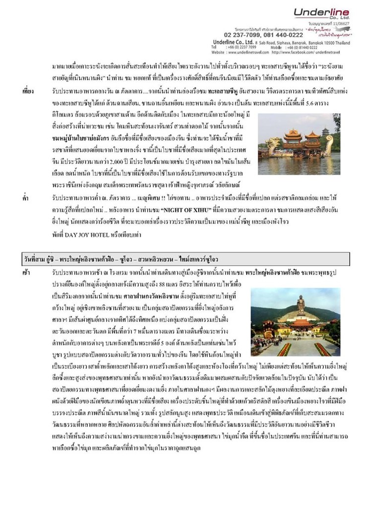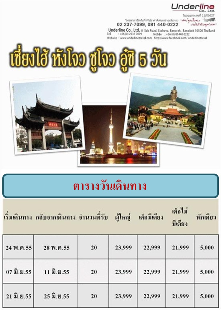 | ติดต่อ: | บริษัท อันเดอไลน์ ทราเวิล/คุณวราภรณ์
