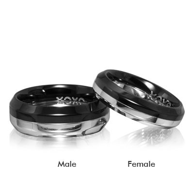 NT712 แหวนแฟชั่น เกรด AAA 2 of A Kind Black & Steel Finish XOXO Spinning Ring
