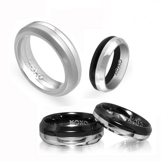 แหวนแฟชั่น เกรด AAA 2 of A Kind Black & Steel Finish XOXO Spinning Ring for Men