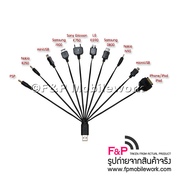 ใช้กับอุปกรณ์อิเล็คทรอนิคส์และมือถือทุกยี่ห้อ-ทุกรุ่นที่ใช้หัวชาร์จทั้ง10ชนิดนี้ เช่น