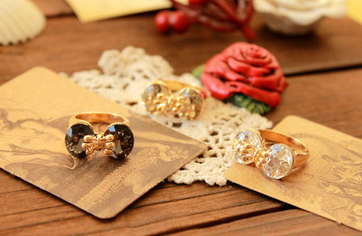NT497 แหวนแฟชั่นแต่งคริสตัลรูปโบว์