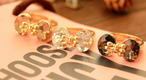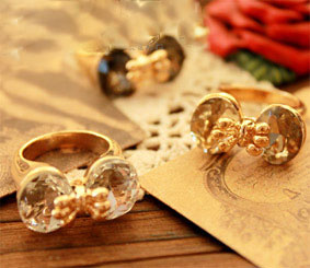 NT497 แหวนแฟชั่นแต่งคริสตัลรูปโบว์ มี 3 สี - สีดำ , สีทอง , สีขาวใส แหวนแฟชั่นสีทอง หัวแหวนเป็นคริสตัลเทียมอย่างดีเล่นแสงสวยมากๆ เทียบกับเครื่องประดับเกรด A ได้เลยนะคะ แหวนปรับขนาดไม่ได้ เส้นผ่านศูนย์กลางแหวน 18mm. รับประกันความสวยงามเหมือนแบบจ้า WEB