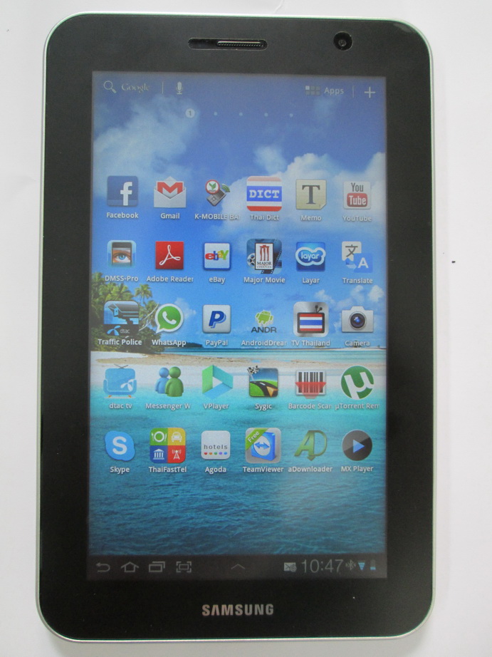 จอแสดงผลแบบ PLS LCD Capacitive Touchscreen 16,700,000 สี ความละเอียด 1024x600 Pixels (กว้าง 7.0 นิ้ว : 170 ppi) พร้อม User Interface แบบ TouchWiz UX UI