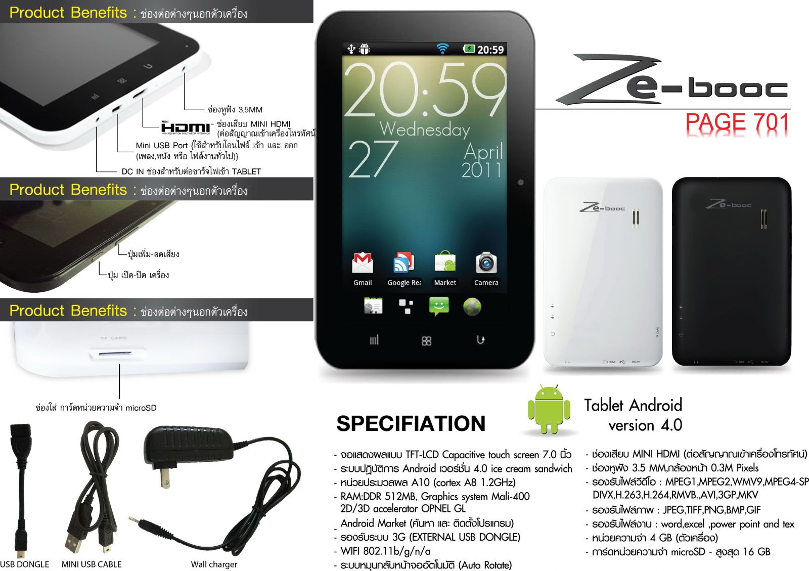 ซี บุ๊ค Ze-book แท็บเล็ต Android 4.0 คุณภาพแรงราคาถูก